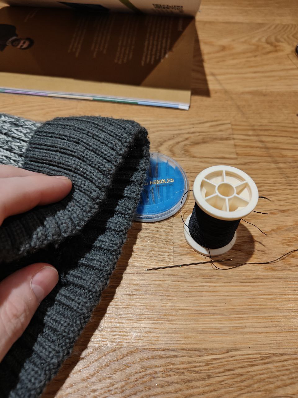 This month, the lining was damaged. Then, in a life first, I became annoyed at myself for thinking about this hat as a “cheap thing”, feeling instead that it deserves more care because it’s just so comfortable and I don’t know how long I will be able to find replacements. So I fixed it instead.